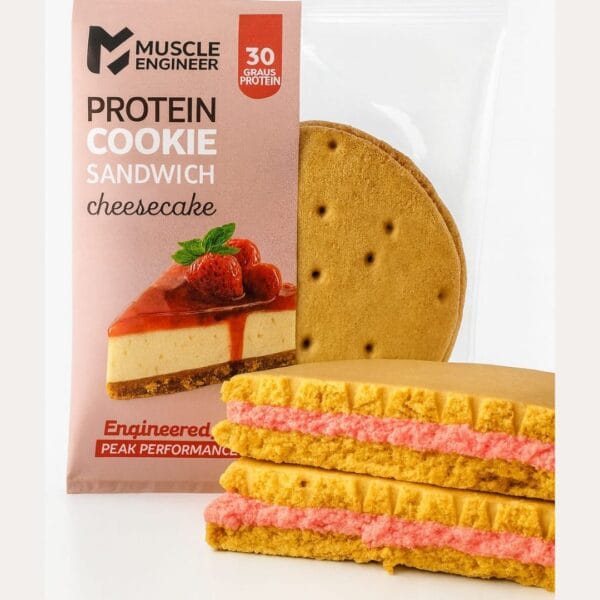 Indulge in the delicious and nutritious Muscle Engineer Protein Cookie Sandwich in Cheesecake flavor. Each cookie sandwich delivers 30g of high-quality protein, combining soft, golden cookies with a smooth, cheesecake-inspired filling. It’s the perfect post-workout recovery snack or an on-the-go energy booster. With no added sugar, no hydrogenated oils, and a rich cheesecake flavor, it’s engineered to fuel your peak performance without compromising taste.