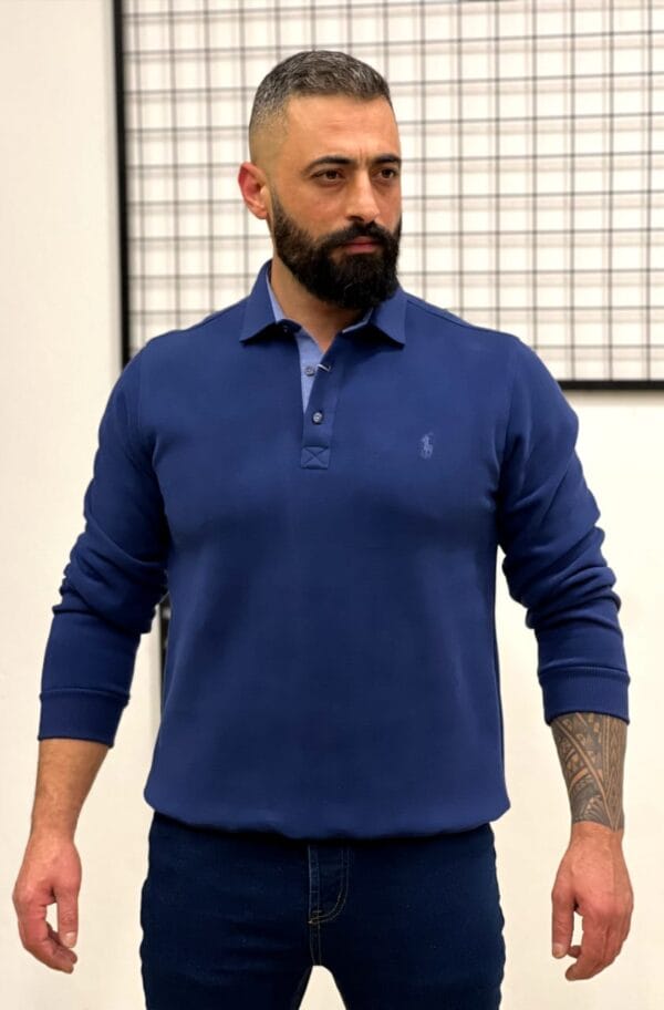 Upgrade your everyday style with this men’s long sleeve polo sweatshirt, designed for the perfect balance between comfort and a clean, classy look. This piece combines the smart appearance of a polo collar with the softness and warmth of a sweatshirt, making it an essential item for every modern man.