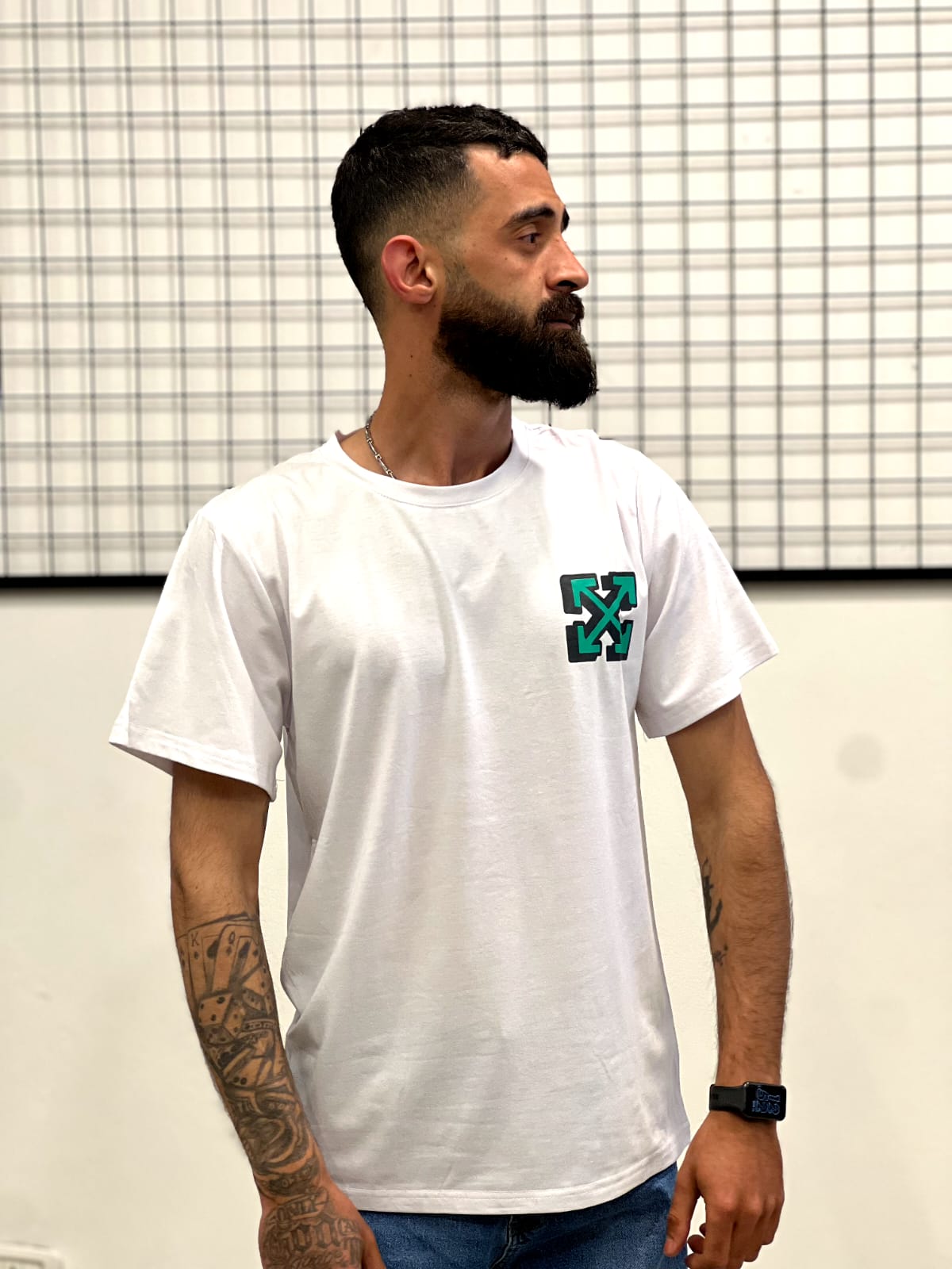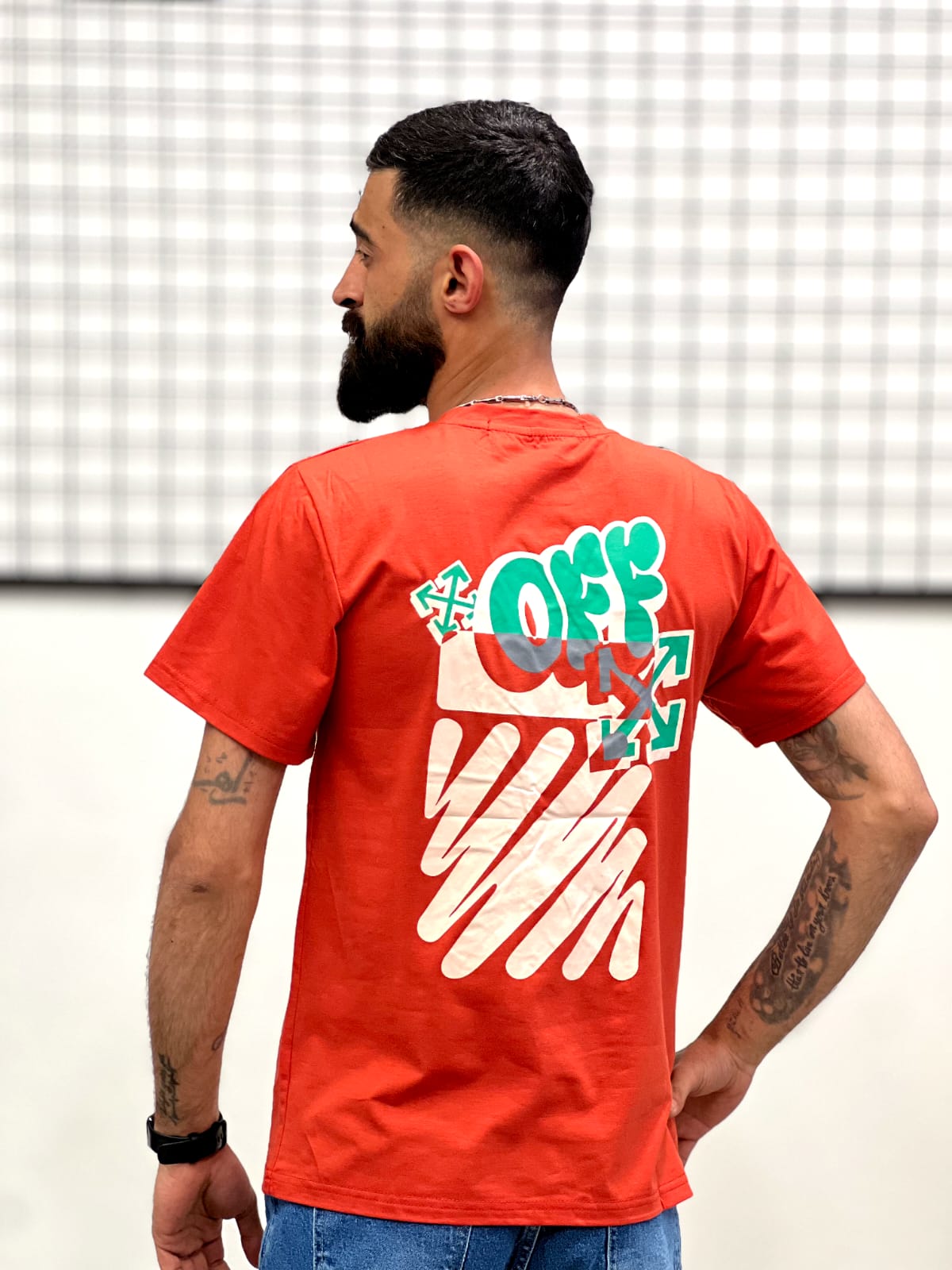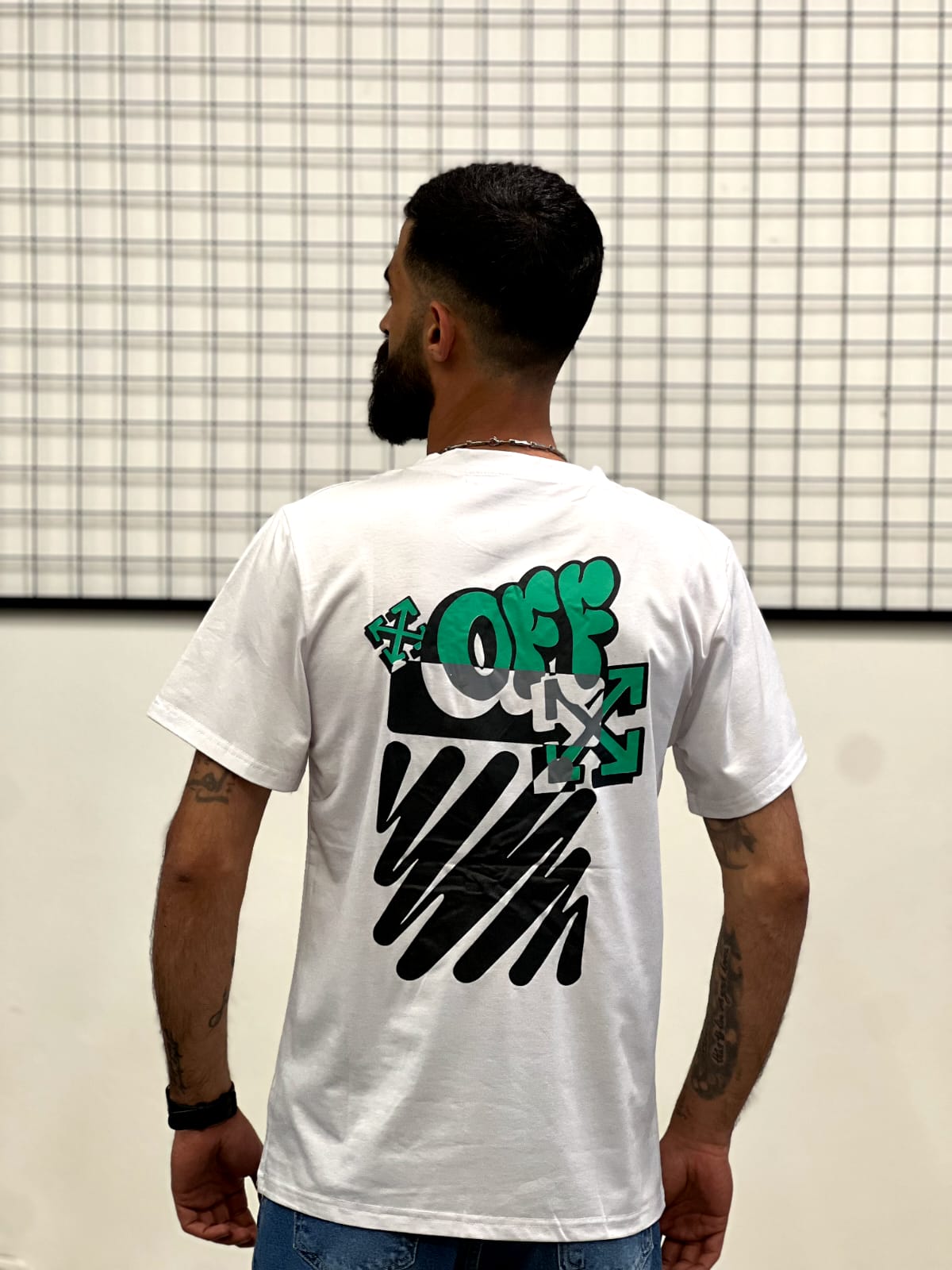 The highlight of this t-shirt is its unique arrow-inspired graphic design on the back, combining bold shapes with modern street art elements. The front keeps it simple with a small logo detail, while the back creates a strong visual impact that instantly elevates your outfit. This contrast makes it perfect for those who appreciate subtle details with a bold twist.